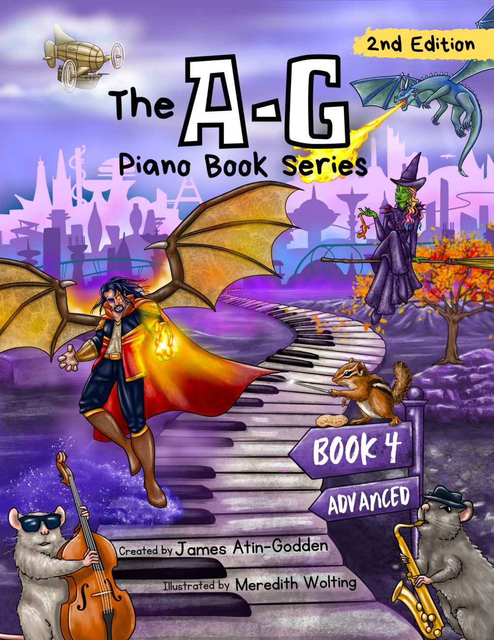This is the fourth book in the series. It’s for advanced piano students to really show off what they’ve learned. Students will play challenging and fun new pieces featuring more complex syncopation and sixteenth notes.
